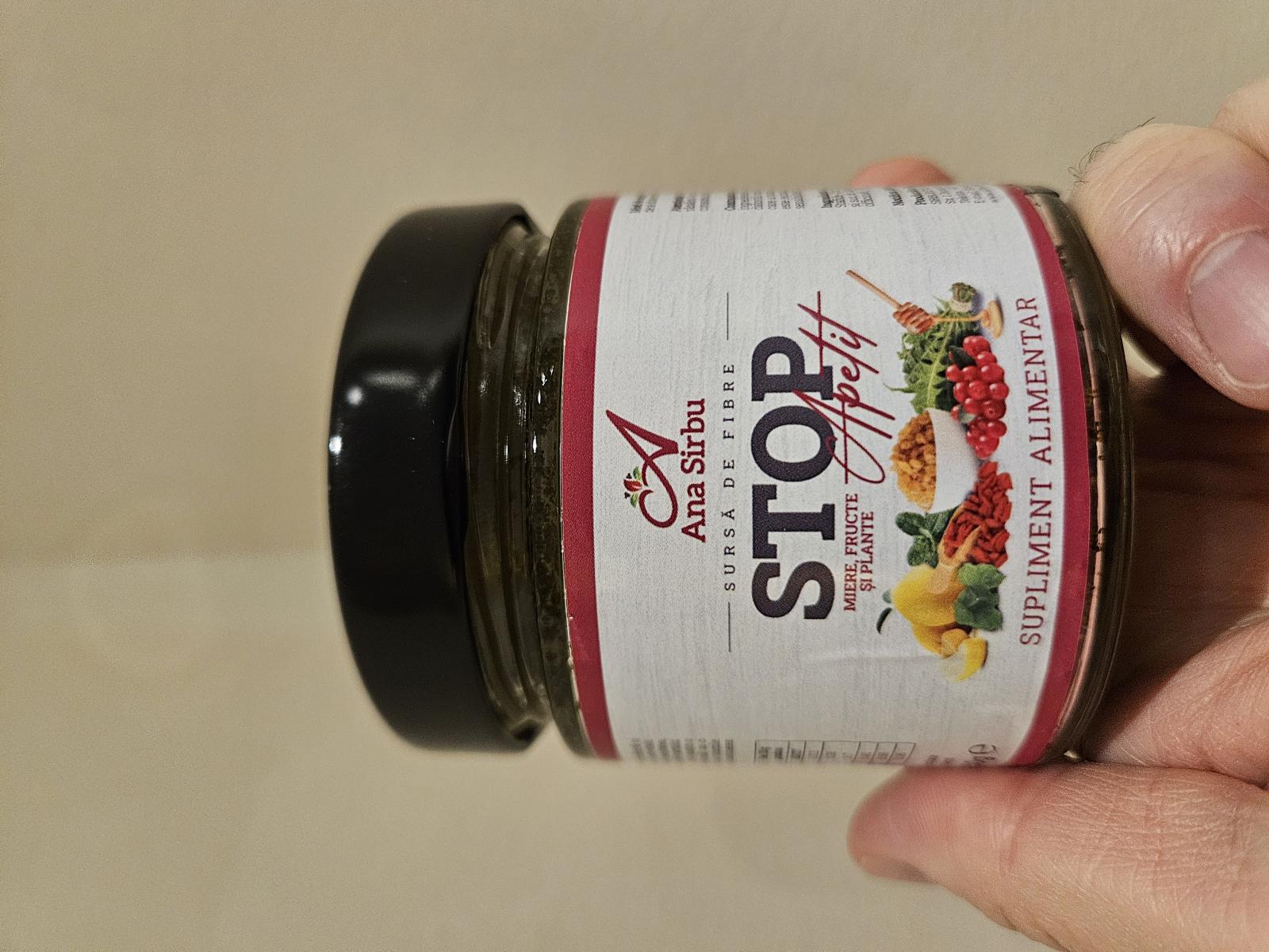 STOP APETIT este un supliment alimentar inovator, creat dintr-un mix echilibrat de miere de tei, fructe deshidratate și plante medicinale. Formula sa complexă este special concepută pentru a reduce pofta de mâncare și pentru a susține metabolismul în mod natural, oferindu-ți în același timp un plus de energie și protecție antioxidantă. (Capacitate recipient 250gr.)
